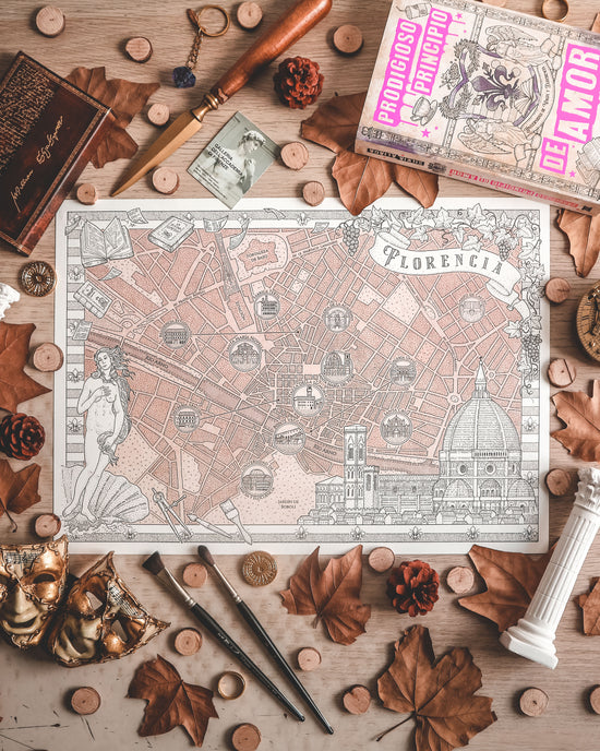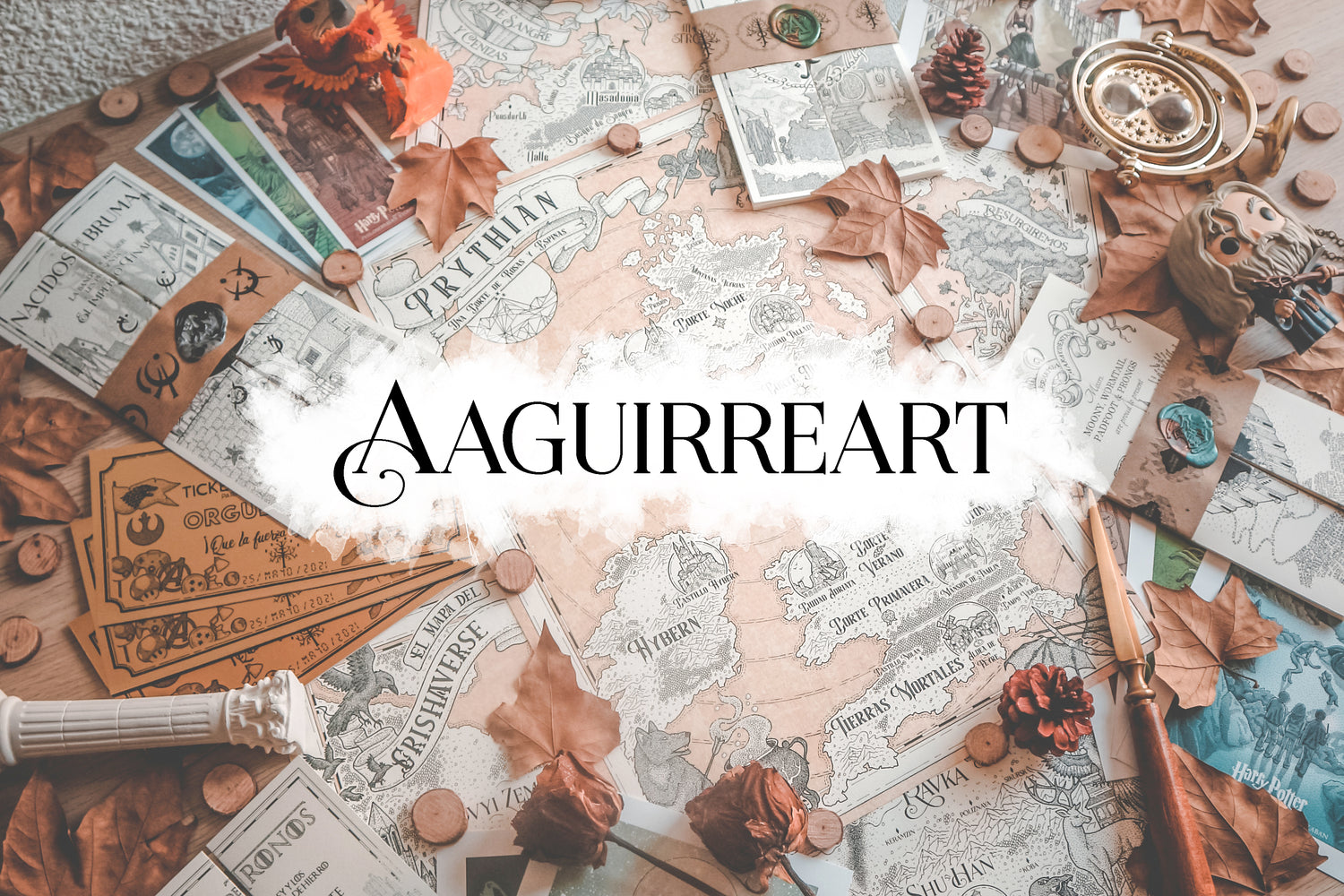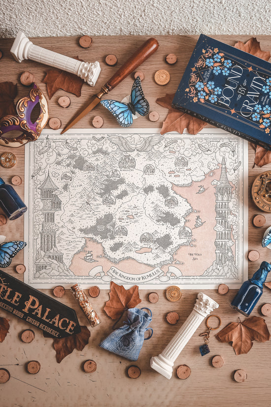 Este mapa es un diseño completamente propio en el que encontrarás 5 de los lugares más icónicos, un mundo super detallado y un marco con ilustraciones de elementos de los libros