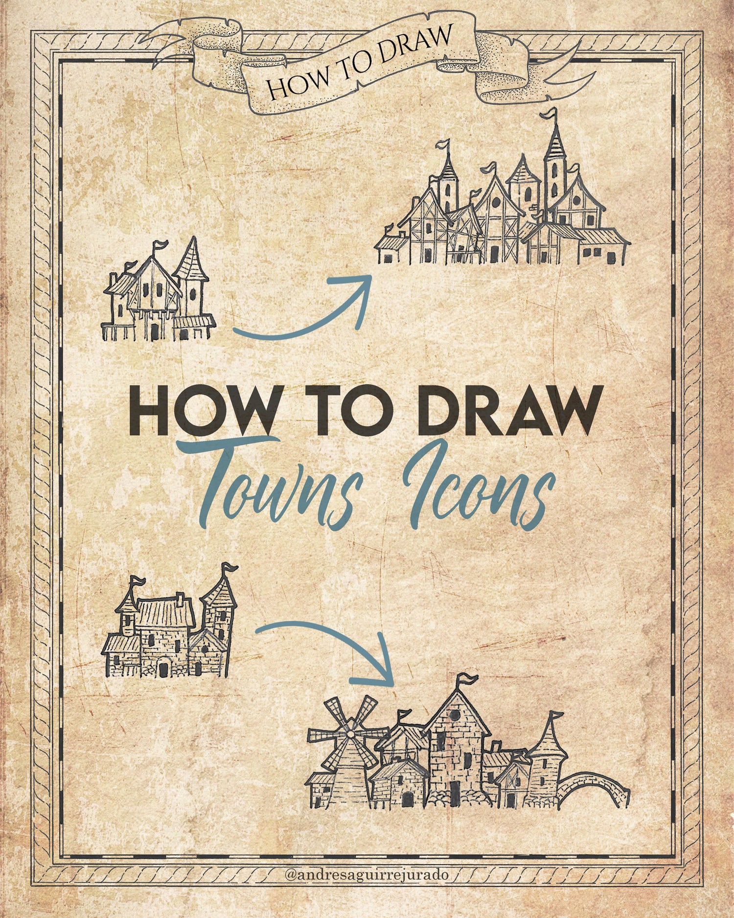A small illustration tutorial, made by Andrés Aguirre Jurado, on how to represent and illustrate your own icons of medieval towns for your fantasy map, project or whatever you need.