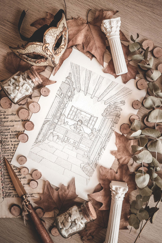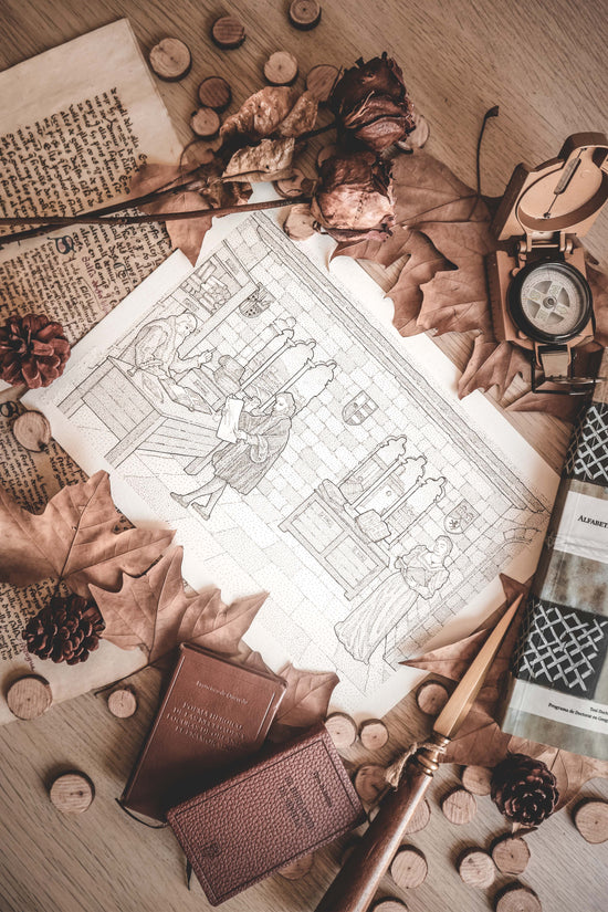 Ver la ilustraciónIlustración hecha por encargo para el trabajo del Doctor en Paleografía Alfred García Femenia