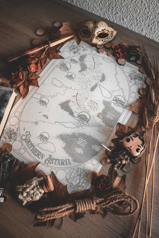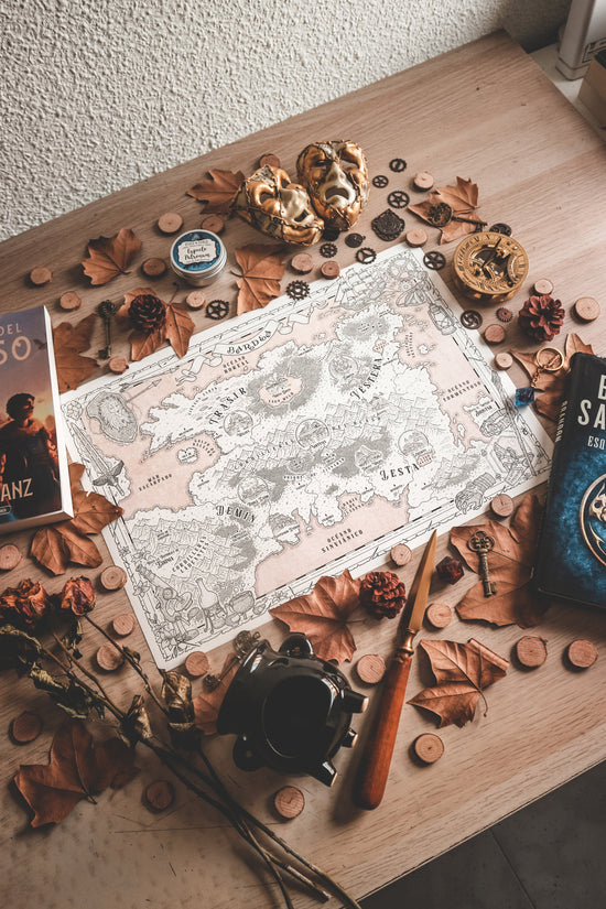 Mapa de fantasía hecho por encargo para la novela "Cenizas de Esperanza" de las escritoras Lucía G. Sobrado y Nana Literaria (Ed. Roomie).