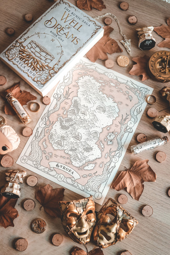 Mapa de fantasía hecho por encargo para la novela "Well of Dreams" para la escritora estadounidense Kayla Ann