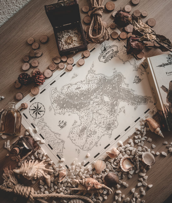 Ver el mapaMapa de fantasía hecho por encargo para la novela "La isla de los mil tesoros" de las escritoras Noemí C. y Mireia G.