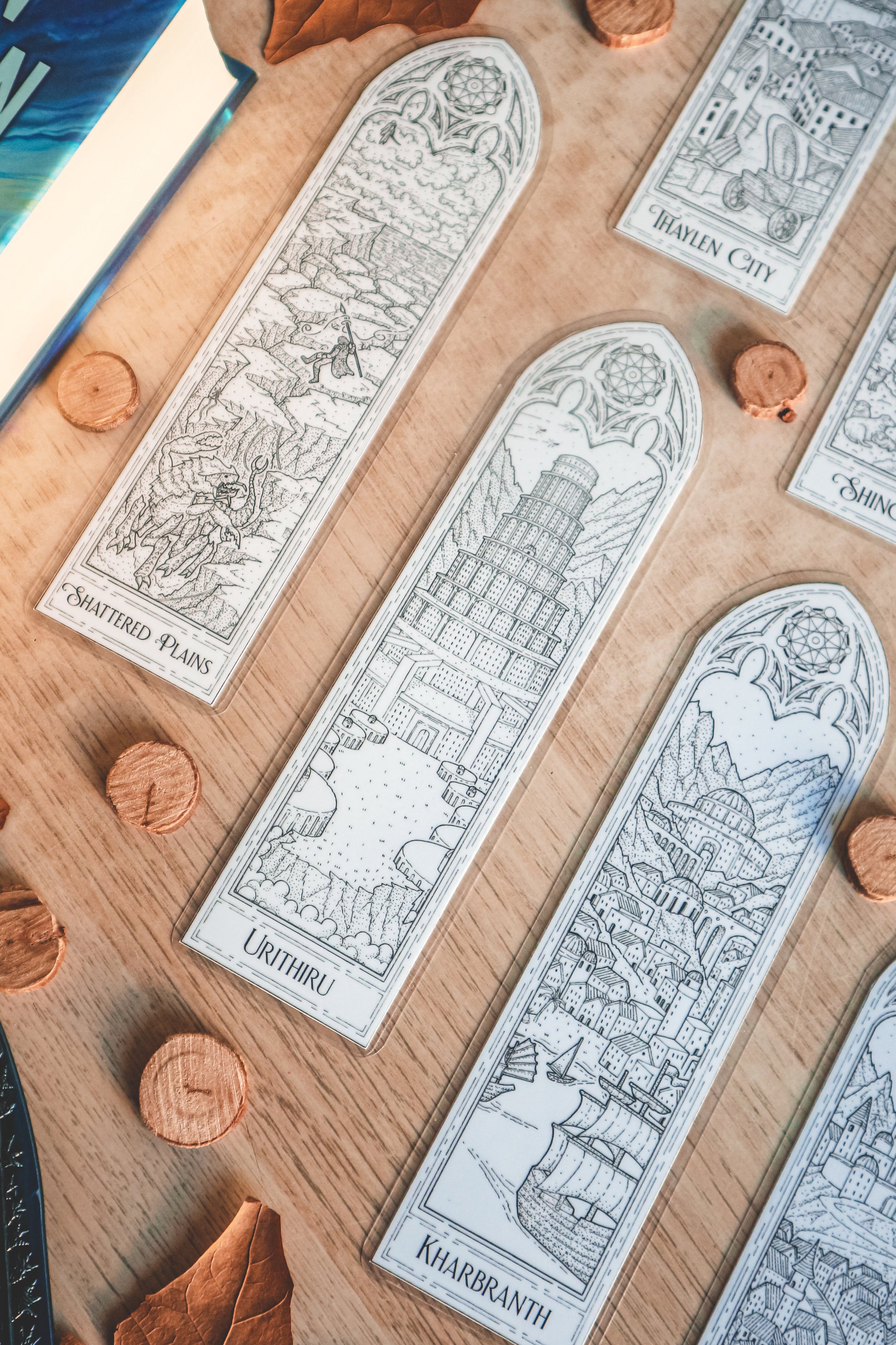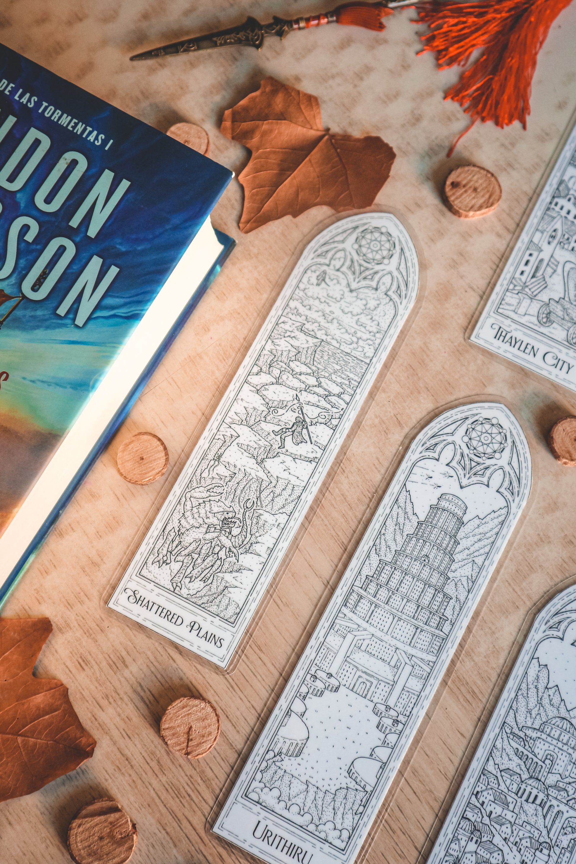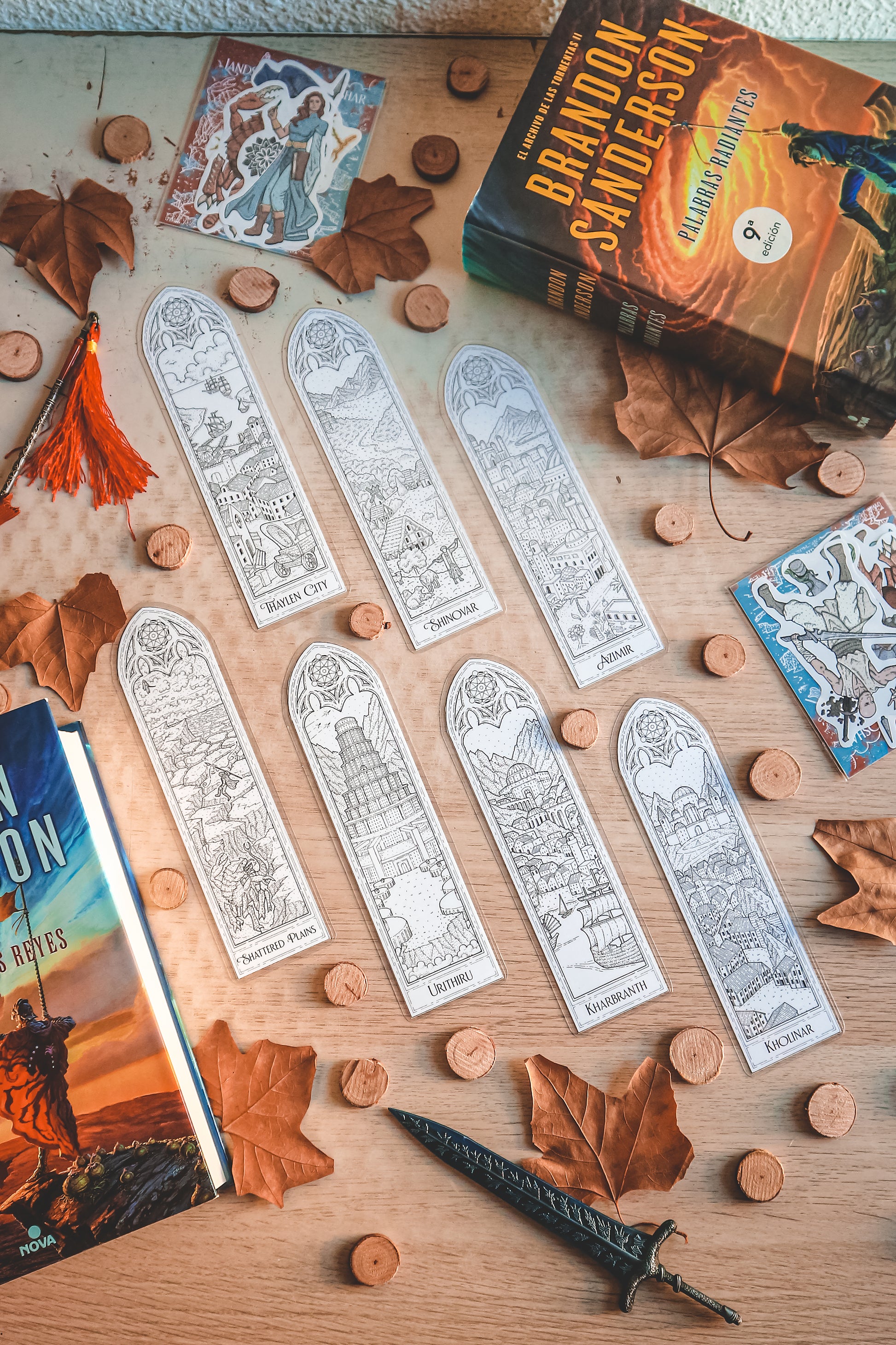 🎨 Puedes elegir entre las 7 opciones de marcapáginas: "Llanuras quebradas", "Urithiru", "Shinovar", "Kholinar", "Kharbranth", "Ciudad Thaylen" y "Azimir"