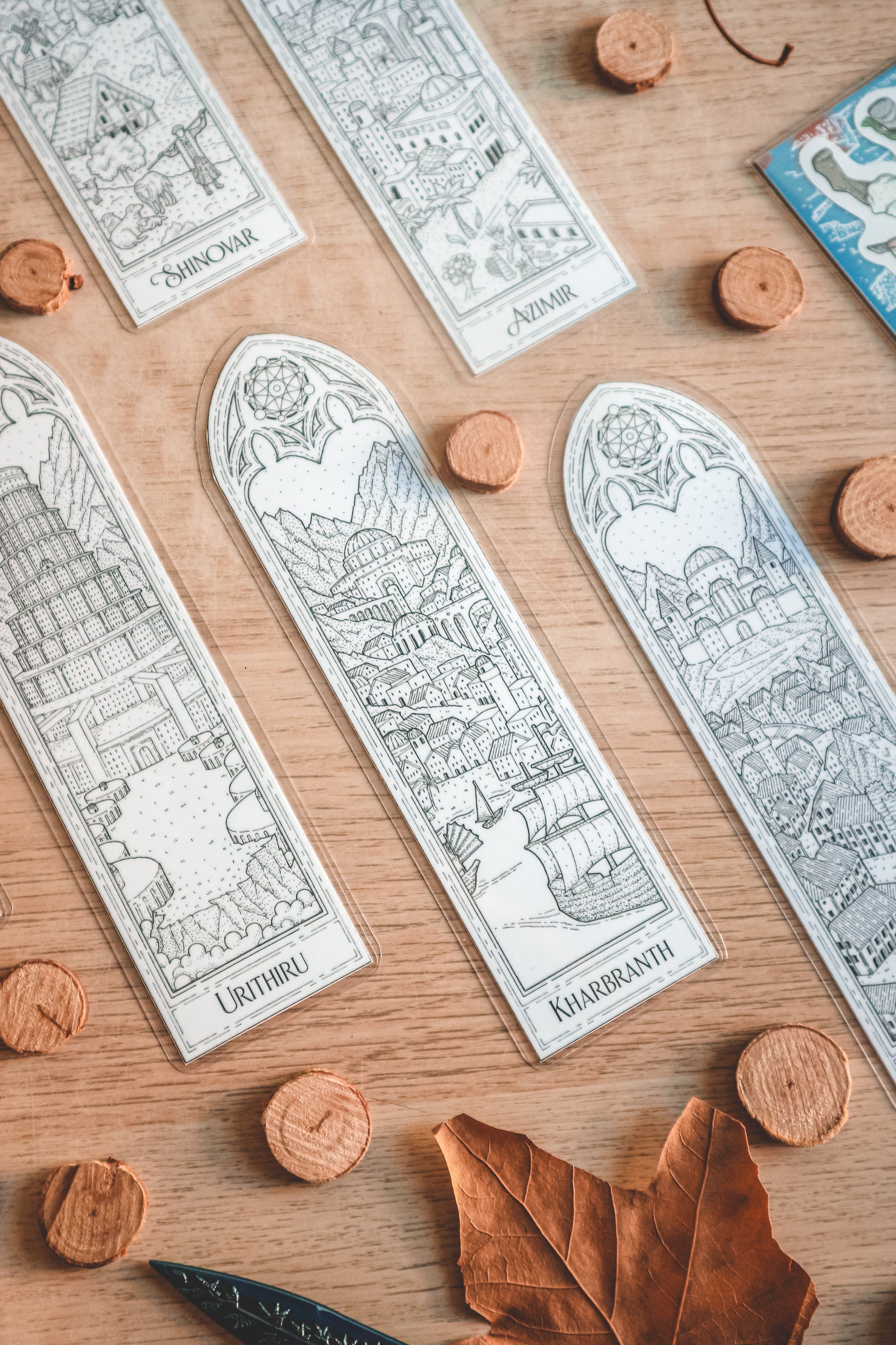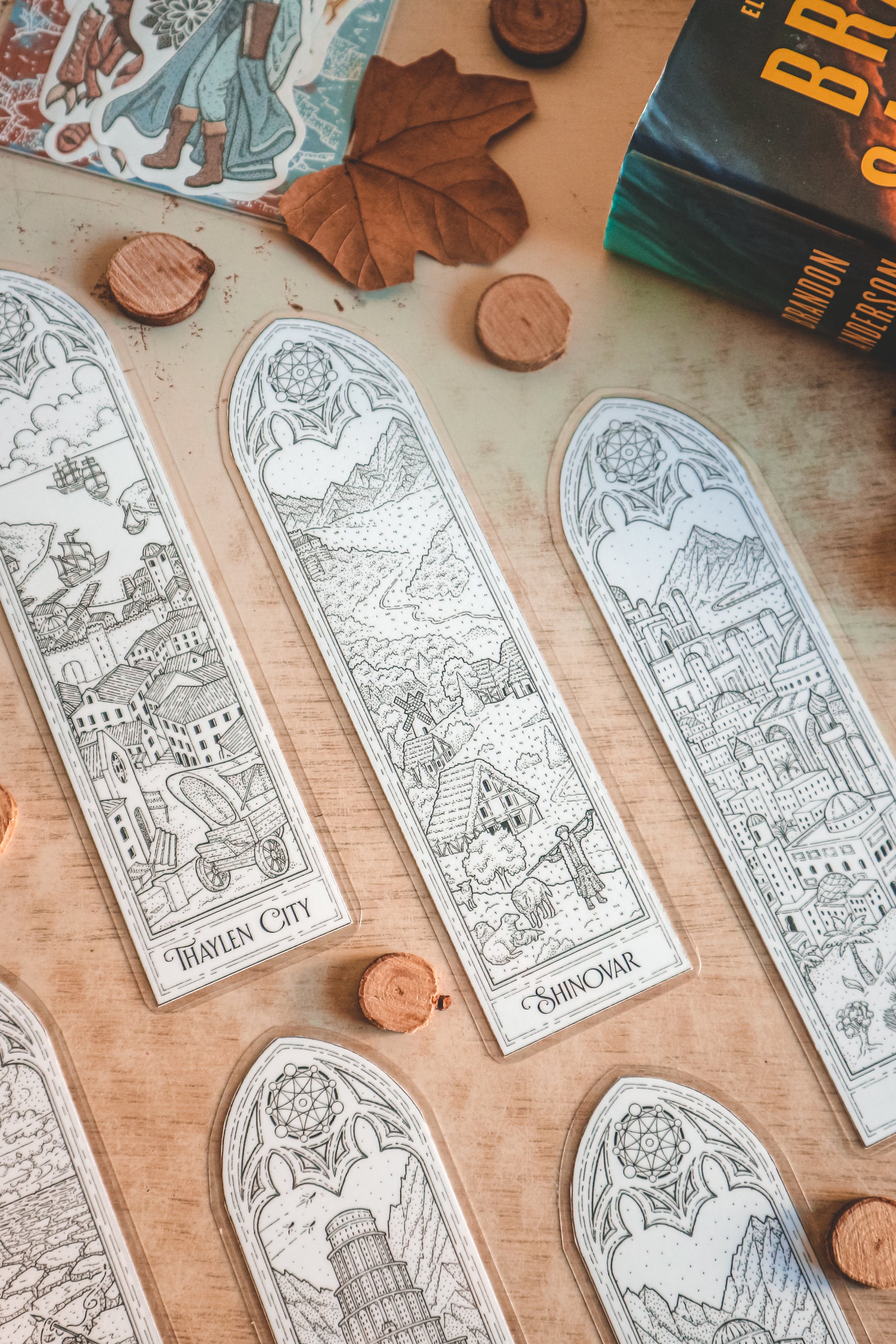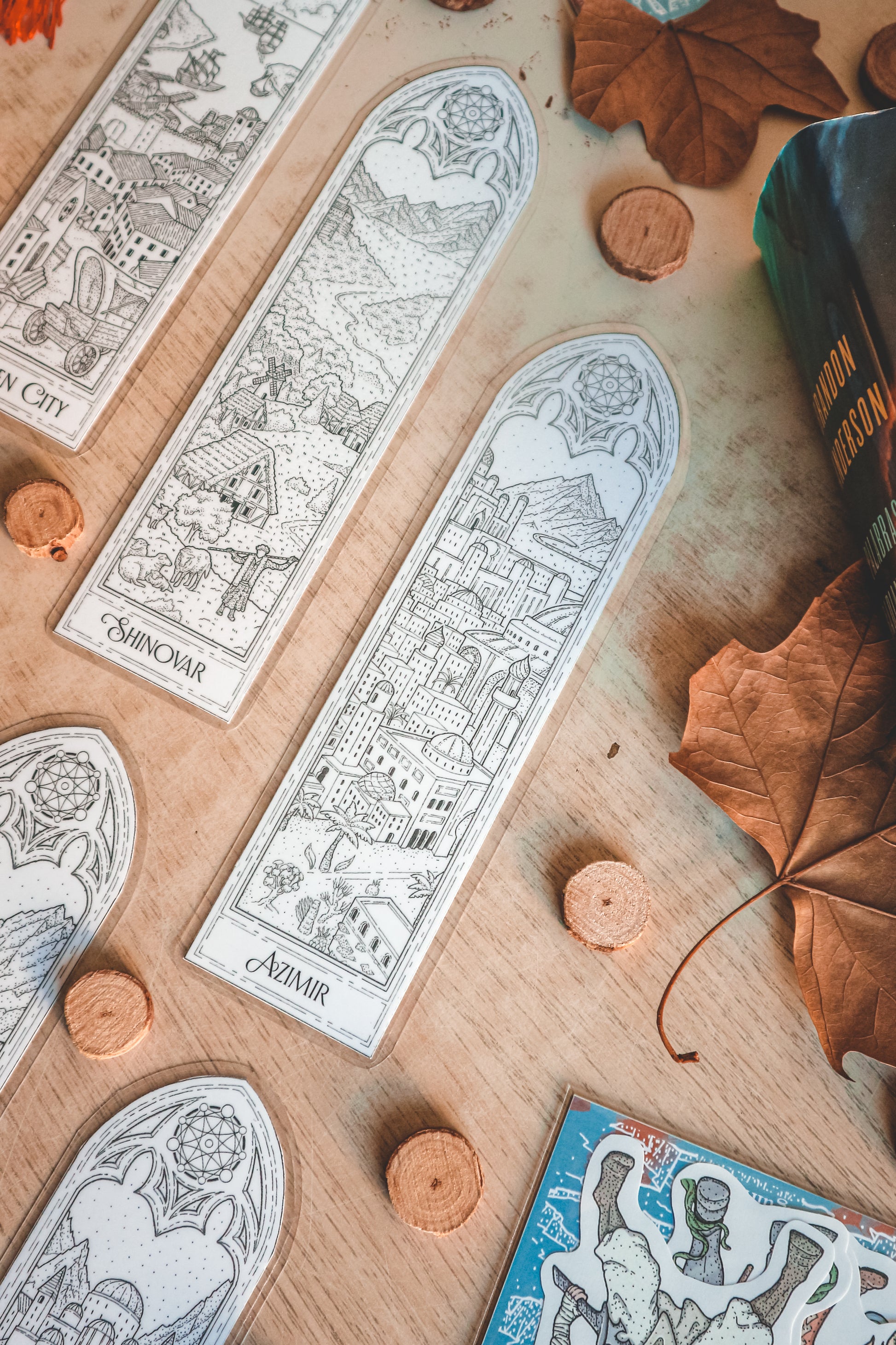 🎨 Puedes elegir entre las 7 opciones de marcapáginas: "Llanuras quebradas", "Urithiru", "Shinovar", "Kholinar", "Kharbranth", "Ciudad Thaylen" y "Azimir"